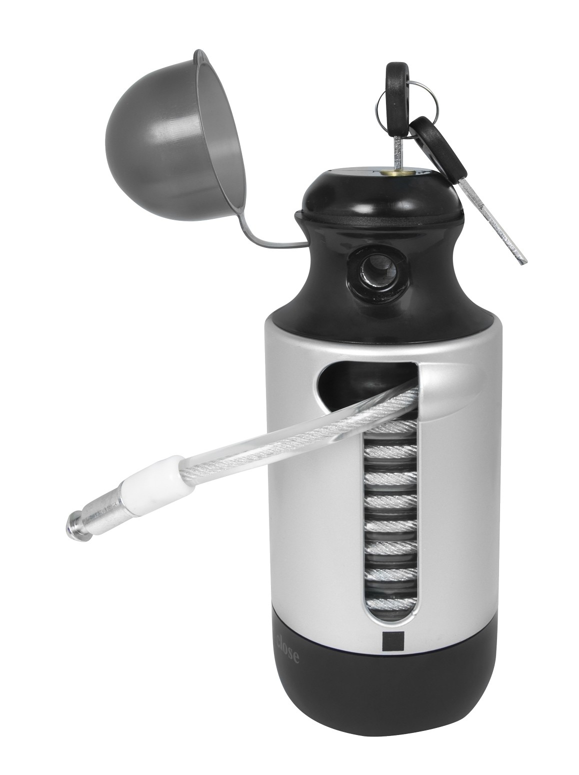 Lacăt inovator, pliabil, care se depozitează discret în interiorul unui bidon, oferind o soluție practică și sigură pentru protecția bicicletei. Are o lungime de 150 mm și un diametru al elementelor de 7 mm, fiind compatibil cu orice suport de bidon standard.