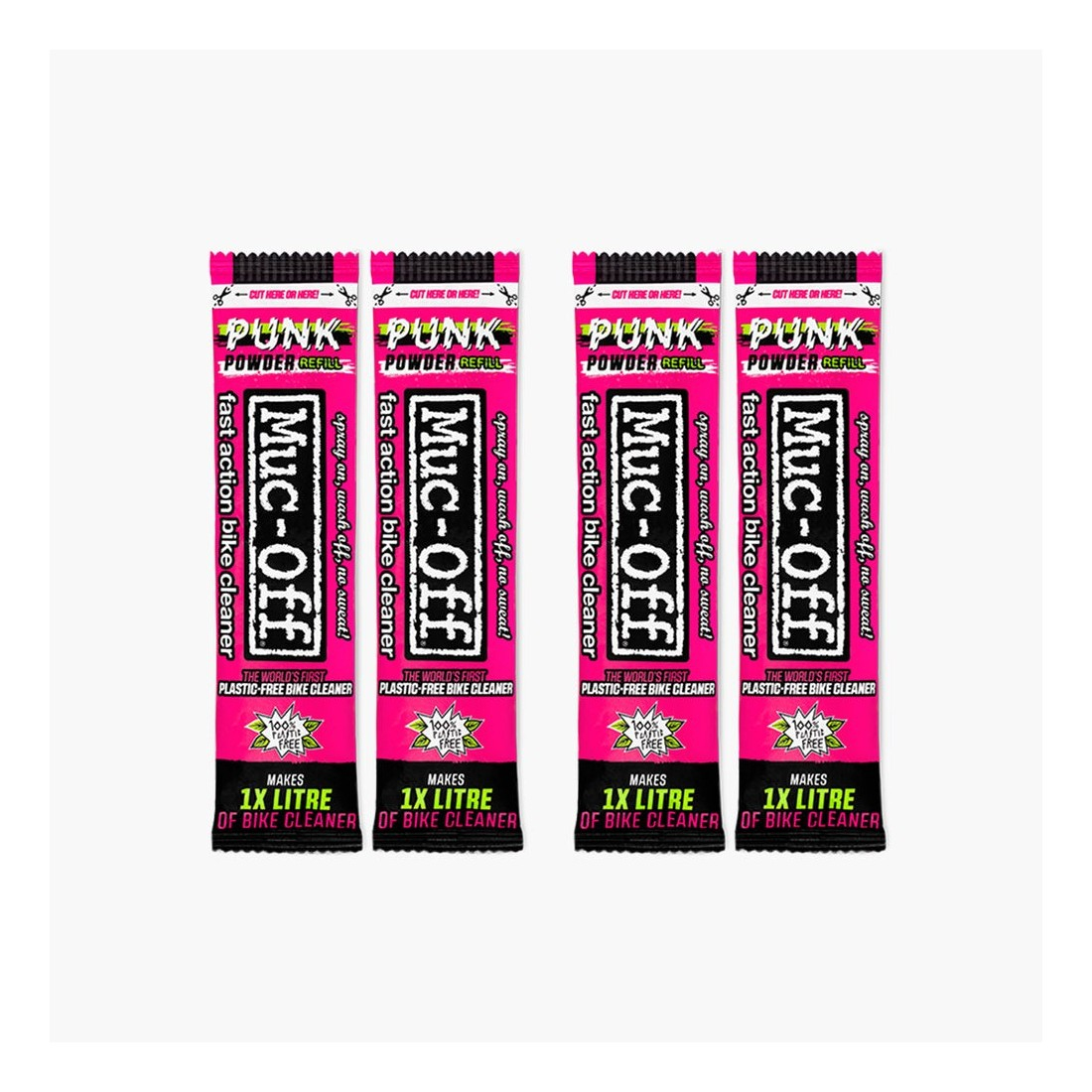 Setul cu 4 plicuri de detergent pudră Muc-Off Punk Powder Bike Cleaner este soluția ideală pentru o curățare eficientă, economică și prietenoasă cu mediul a bicicletei tale. Formula concentrată sub formă de pulbere se transformă rapid într-un detergent puternic: este suficient să amesteci un plic de 30 g cu 1 litru de apă pentru a obține o soluție completă de curățare.