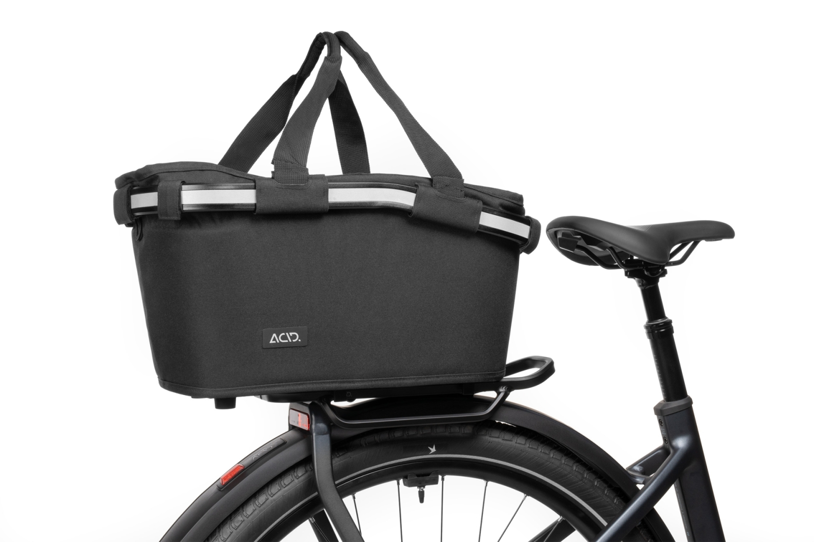 Coșul portbagaj ACID CITY 20 RILink este un companion de încredere în toate deplasările tale. Transportă fără efort cumpărăturile săptămânale, geanta de plajă sau rucsacul de școală din punctul A în punctul B. Husa practică cu șnur protejează conținutul valoros, iar buzunarul interior cu fermoar oferă spațiu pentru obiecte mici și importante. Elementele reflectorizante asigură un plus de siguranță în condiții de lumină scăzută.