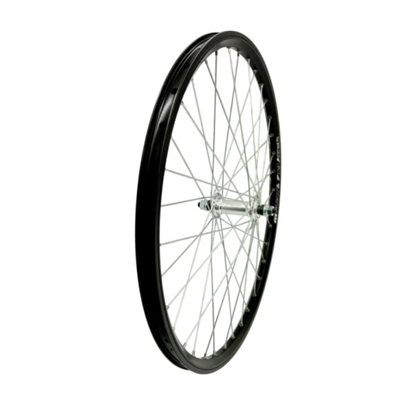 Roata față REMERX Dragon 507x19 este destinată bicicletelor de 24”, oferind o construcție solidă și fiabilă pentru utilizare zilnică. Janta dublă, simplu capsată, de culoare neagră, este echipată cu 36 de spițe Sapim Zinc, iar butucul Sunrace HBM45F cu finisaj argintiu, pe bile, este compatibil cu frânare pe jantă. Roata dispune de ax cu piulițe pentru prindere sigură și are o greutate de 940 g, asigurând un bun echilibru între rezistență și manevrabilitate.